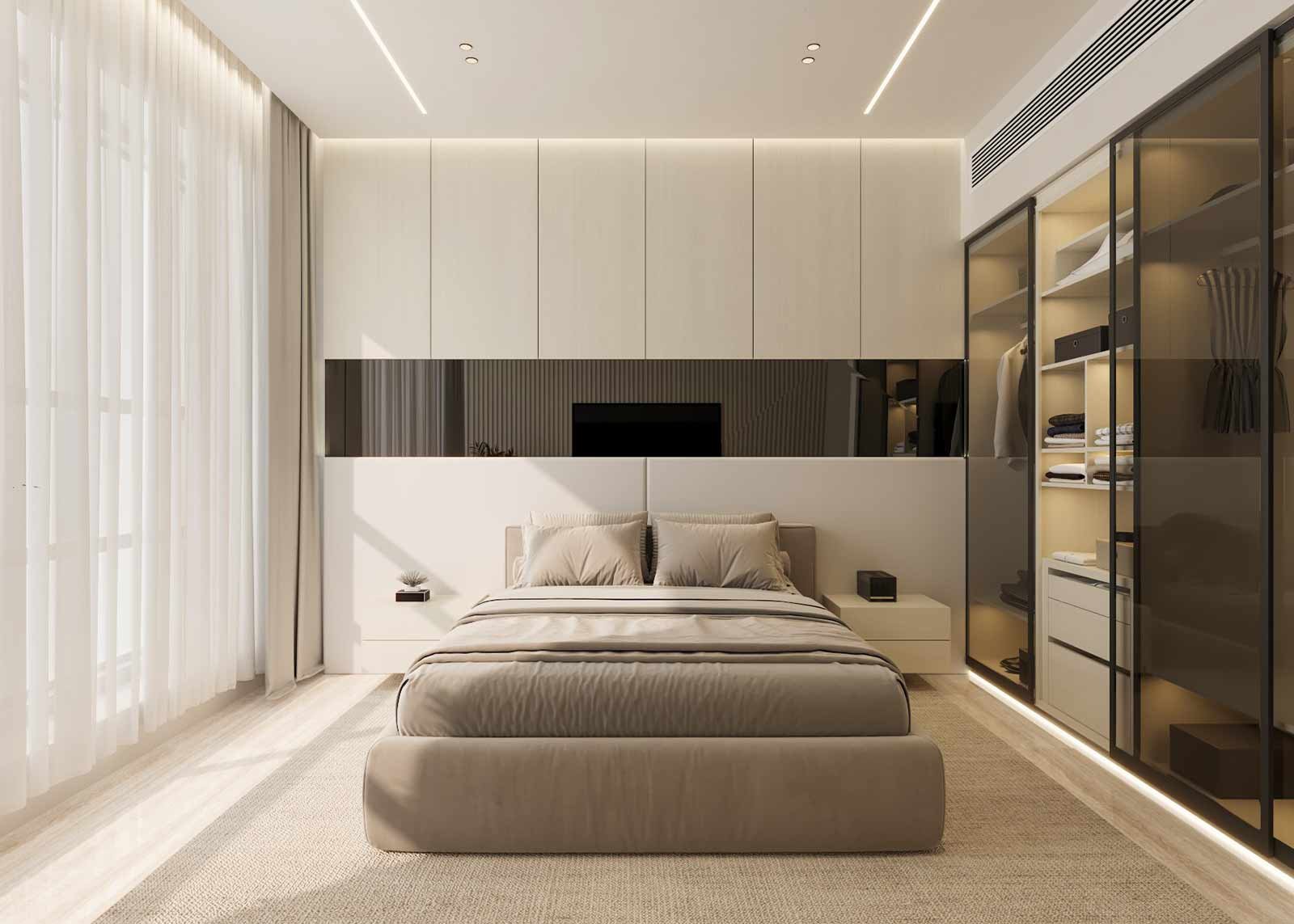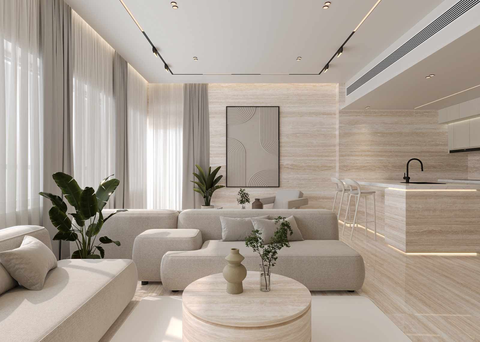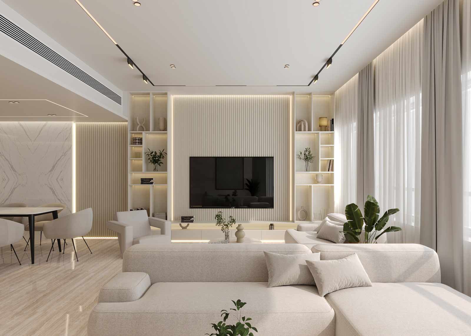The design embraces a palette of light, airy tones that enhance the apartment’s natural brightness and sense of openness. Clean lines, subtle textures, and thoughtfully selected materials come together to create a space that feels both elegant and effortless. Custom joinery, soft ambient lighting, and refined finishes contribute to a serene, contemporary atmosphere.