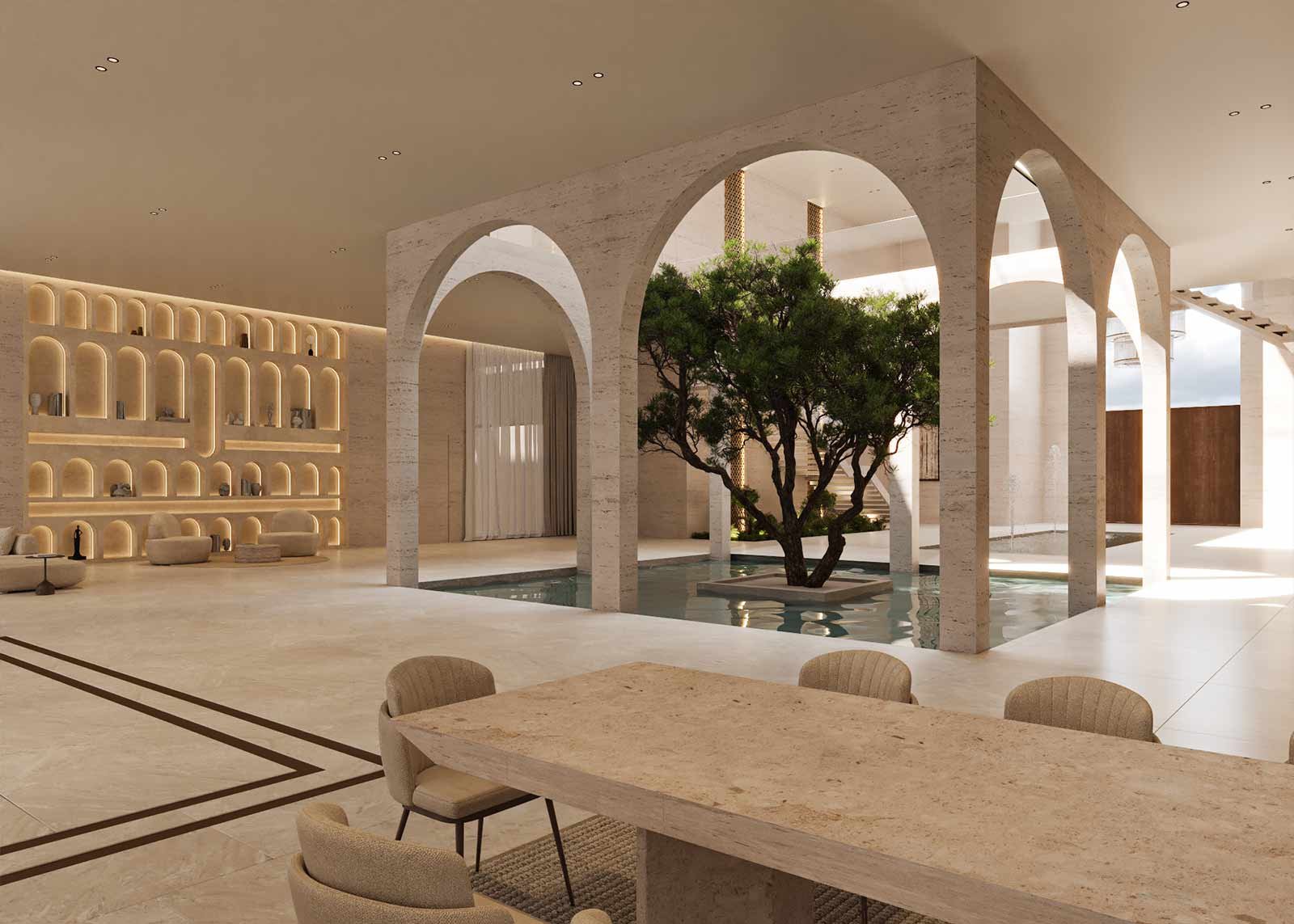 Infinity Design and Architecture designed this residential villa to embody timeless elegance through a modern architectural lens. Every aspect of the home was conceived with intention—from its spatial planning to the curated material palette—offering a refined living experience that balances luxury with comfort.