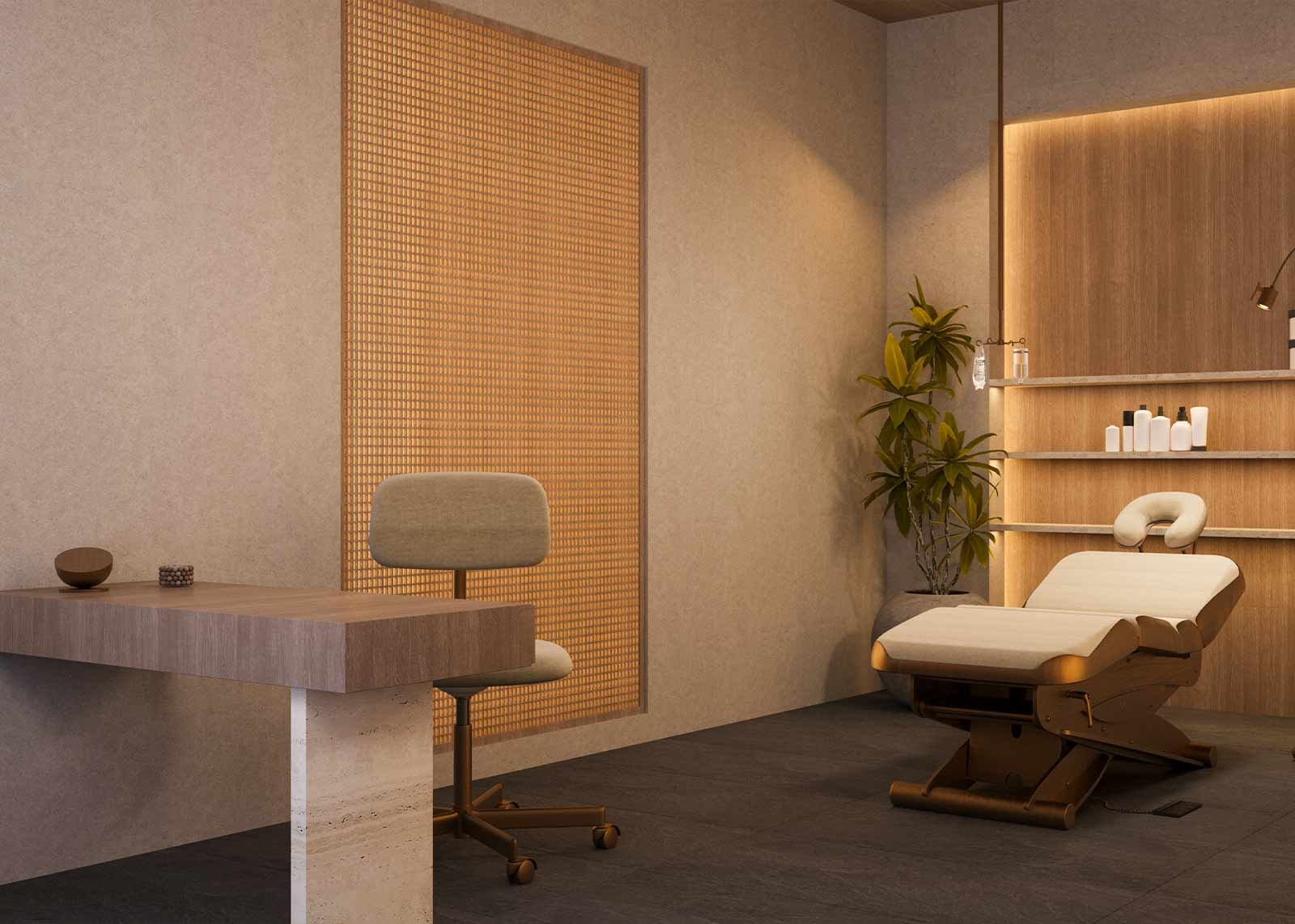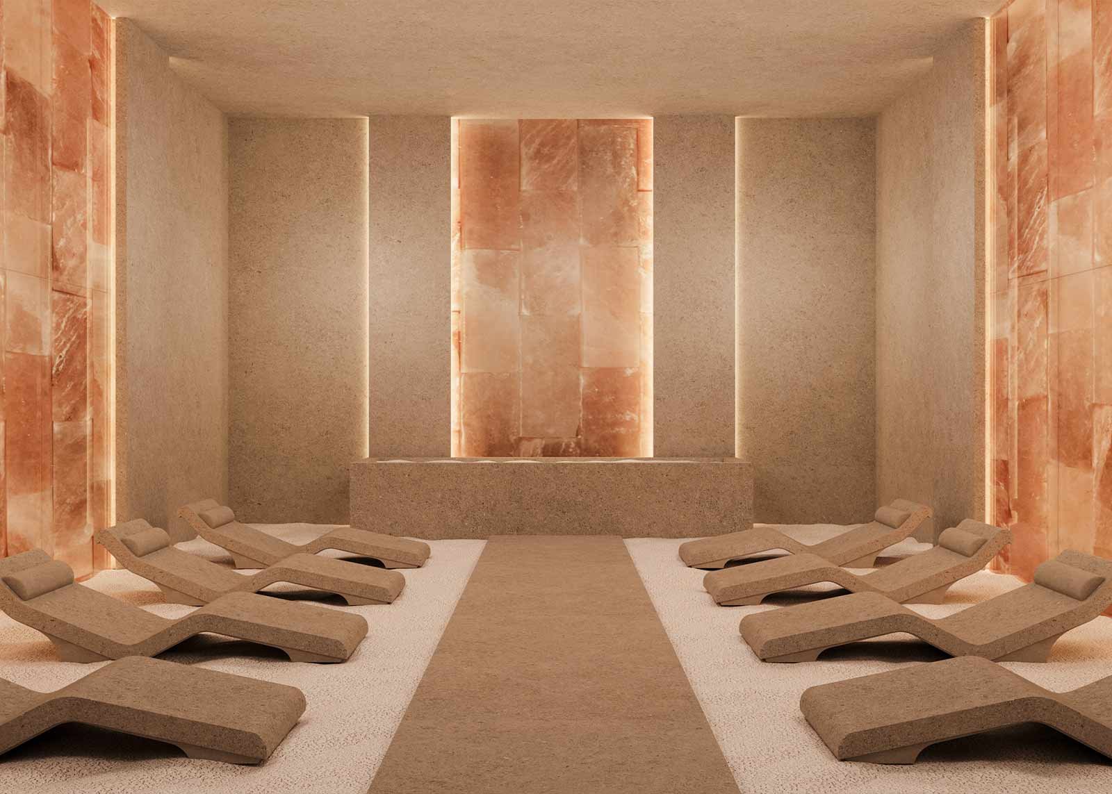From the Banya, Hammam, and Sauna to the Experience Shower, Ice Fountain, and Salt Cave, each zone is uniquely tailored yet cohesively linked through tone, texture, and flow. Changing rooms, Couple Treatment Rooms, and IV Therapy spaces are designed with privacy and serenity in mind, while the Salon and Relaxation Area extend the experience with refined calm.